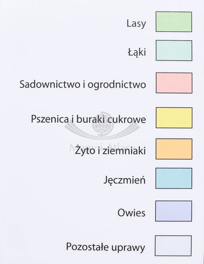 Szkolna mapa ścienna Polski w skali 1:550 000przedstawiająca rozmieszczenie dominujących upraw, hodowli i strukturę użytkowania ziemi, uzupełniona dodatkowo o interesujące dane statystyczne...
