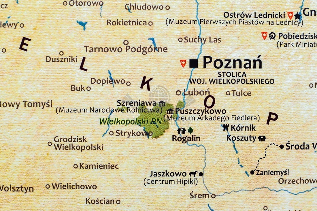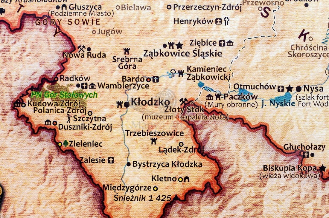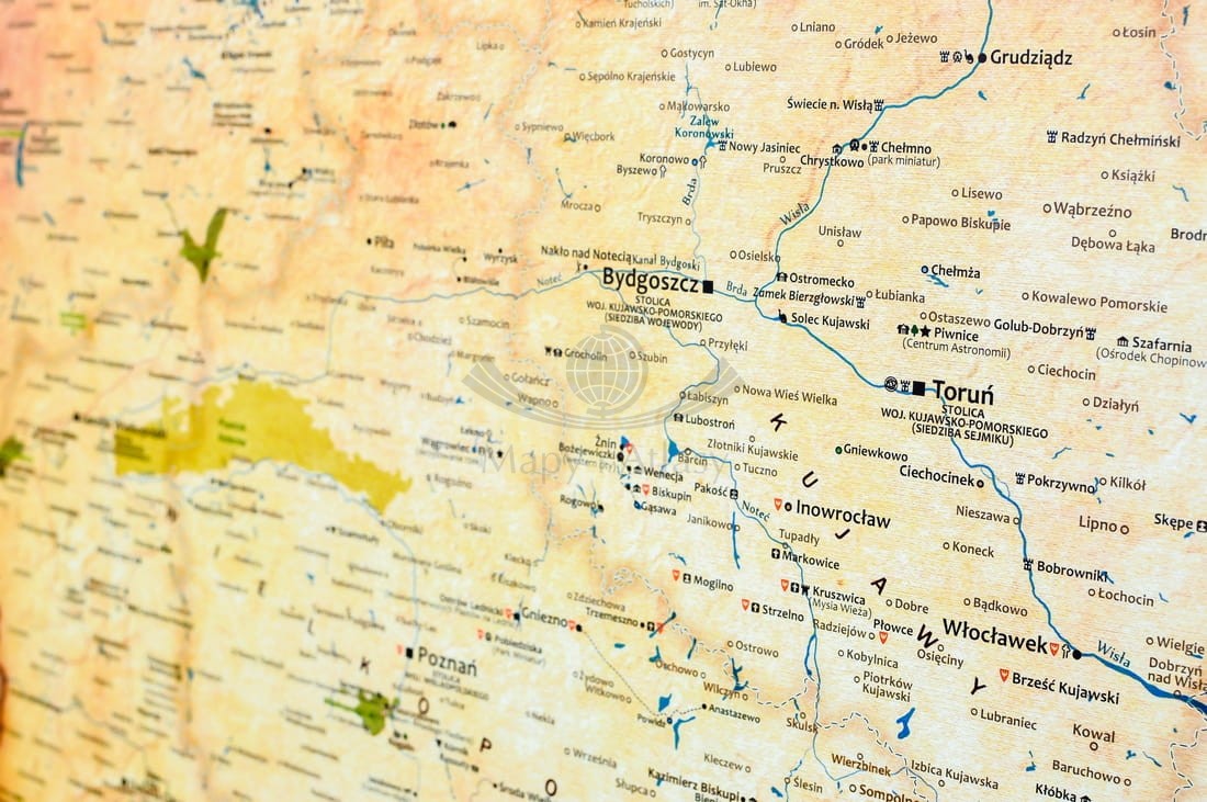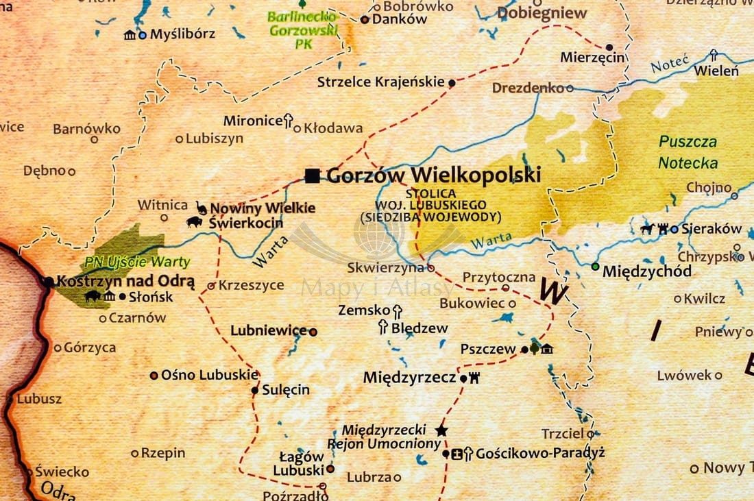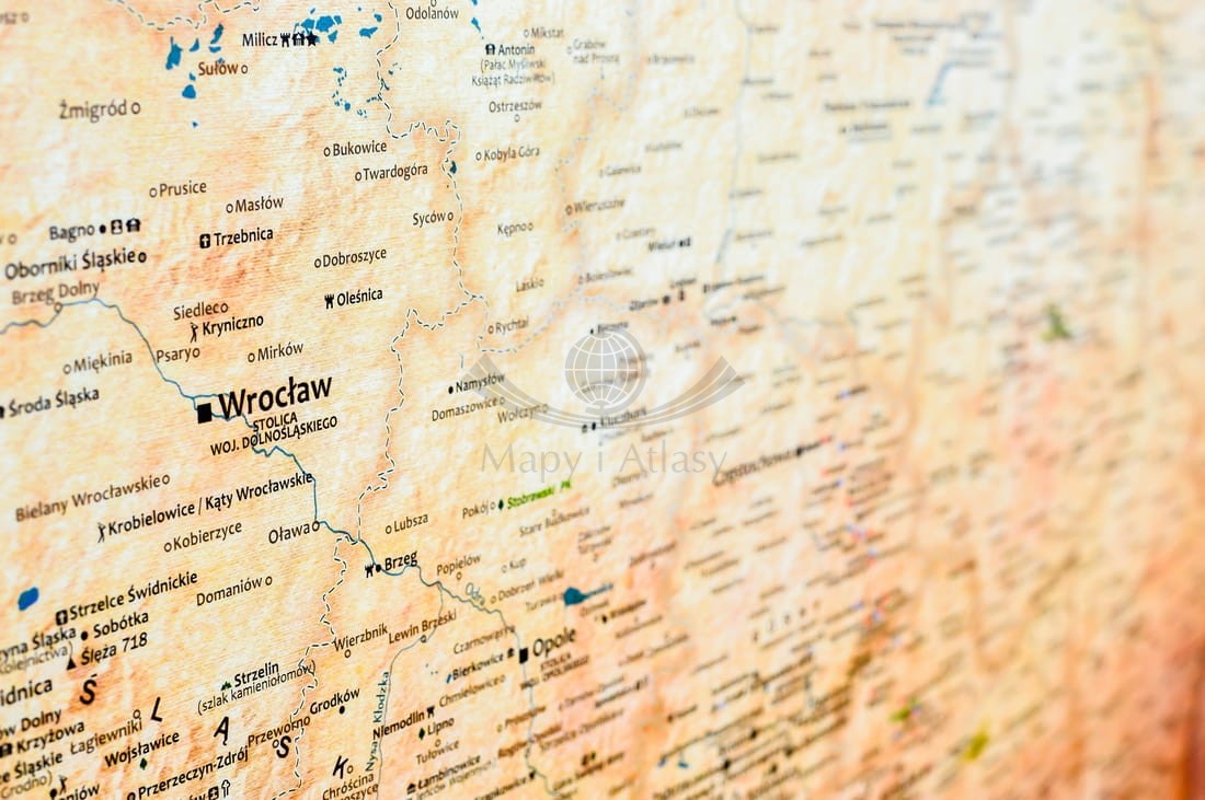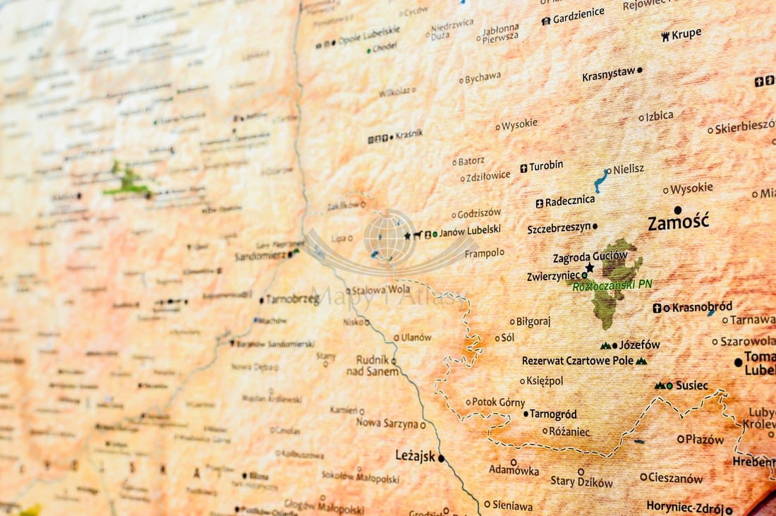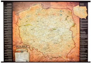 Polska. Mapa ścienna turystyczna. Drewniane półwałki