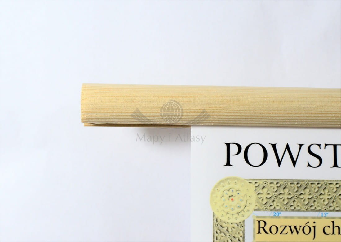 - oprawa w drewniane półwałki z zawieszeniem sznurkowym (mapa gotowa do powieszenia).