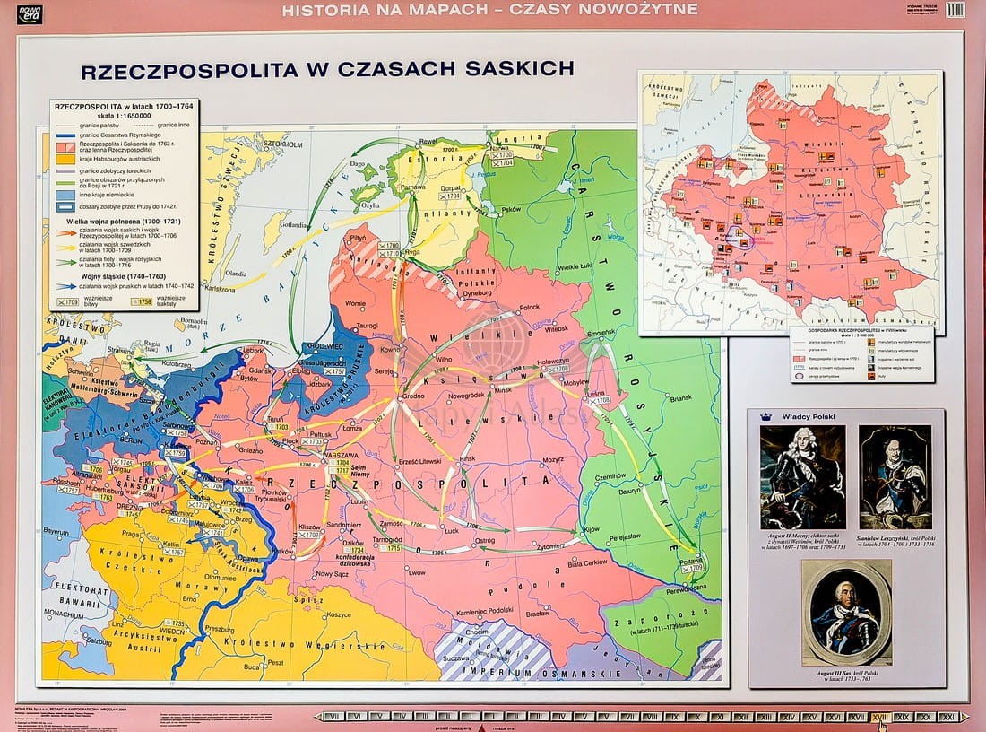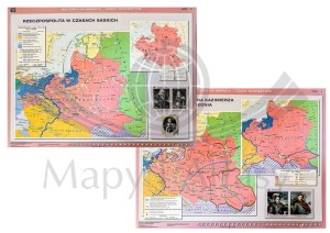 Rzeczpospolita Jana Kazimierza. Odsiecz Wiednia / Rzeczpospolita w czasach saskich. Dwustronna mapa ścienna