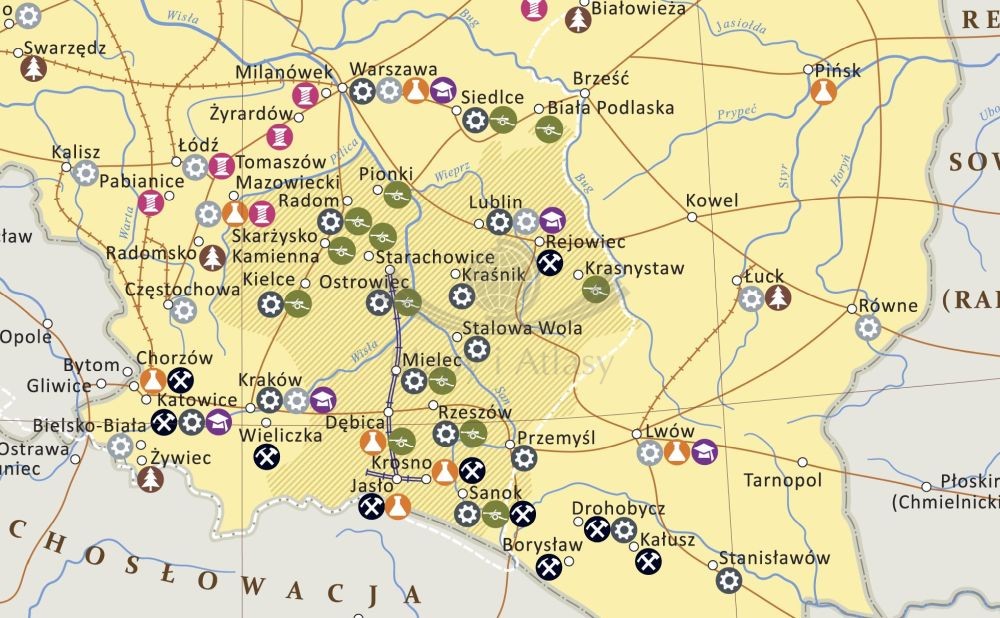 - obszar COP i lokalizacja podstawowych gałęzi przemysłu,