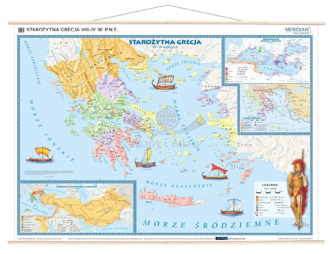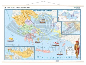 Starożytna Grecja VIII-IV w. p.n.e. Mapa ścienna 160 x 120 cm. Drewniane półwałki