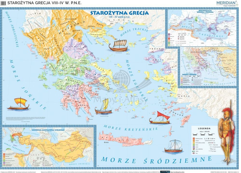 Starożytna Grecja VIII-IV w. p.n.e. Mapa ścienna 200 x 150 cm. Drewniane półwałki