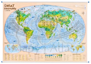 Świat Niezwykły 1:30 000 000. Mapa ścienna fizyczna (krajobrazowa). Demart