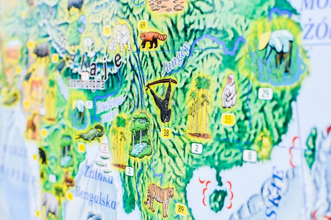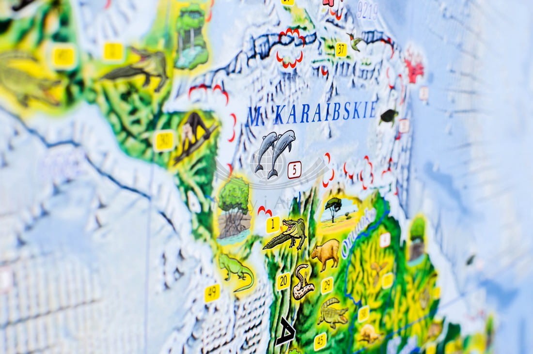 Kolorowa mapa ścienna pokazuje małym odbiorcom świat inny niż na tradycyjnych mapach. Dzięki niej odkryją bogactwo krajobrazów.