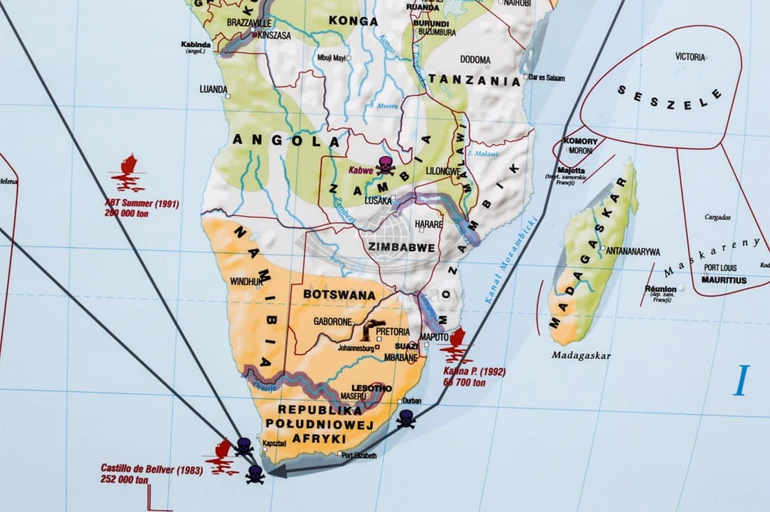 Opracowanie to stanowi kompendium wiedzy o największych i najbardziej katastrofalnych w skutkach wyciekach ropy naftowej, skażeniach promieniotwórczych, chemicznych, miejscach składowania ogromnych ilości substancji toksycznych. Zarówno lądy jak i wody oceanów są w coraz większym stopniu przekształcane i obciążone rosnącą populacją ludzi, mapa pokazuje obszary poddane największej antropopresji.