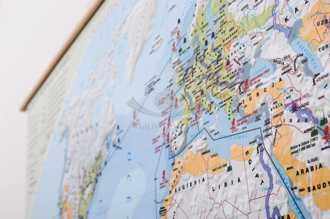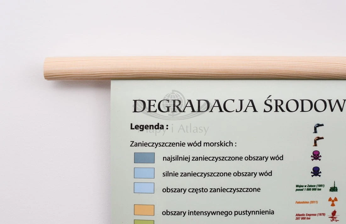 Świat 1:22 000 000. Degradacja środowiska na świecie. Mapa ścienna. Drewniane półwałki