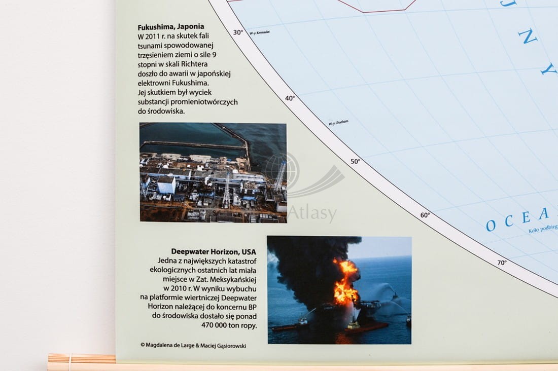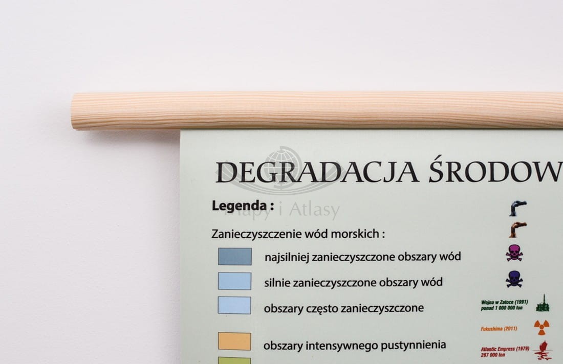 Świat 1: 26 000 000. Degradacja środowiska na świecie. Mapa ścienna. Drewniane półwałki