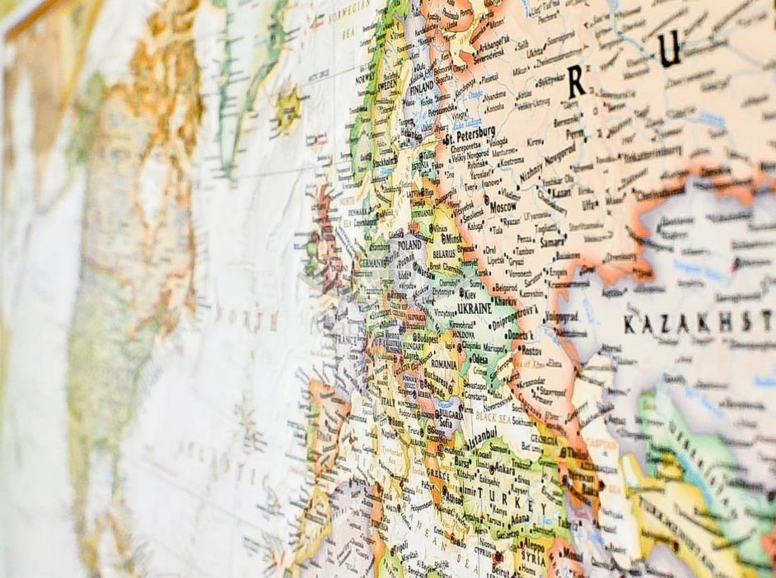 Mapa zafoliowana dwustronnie. Laminat matowy. Oprawiona w białe, plastikowe rurki z zawieszką ze sznurka - gotowa do zawieszenia.