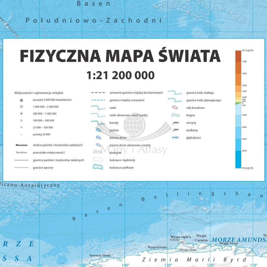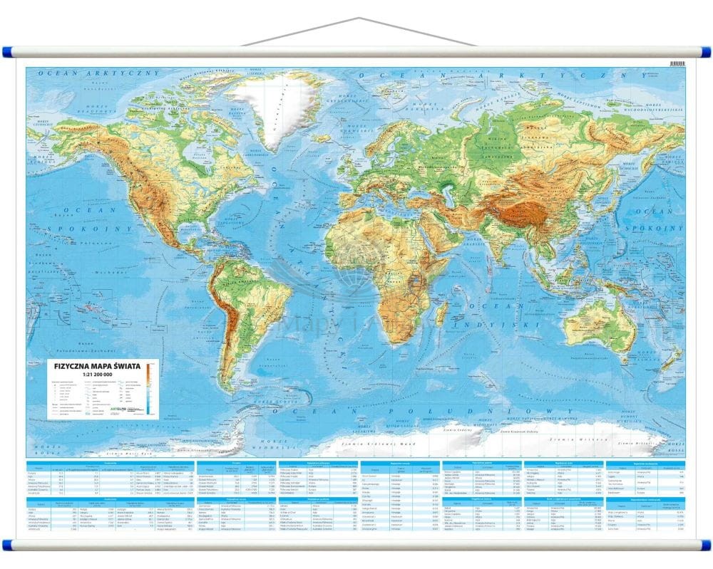 Świat 1:21 200 000. Mapa ścienna fizyczna