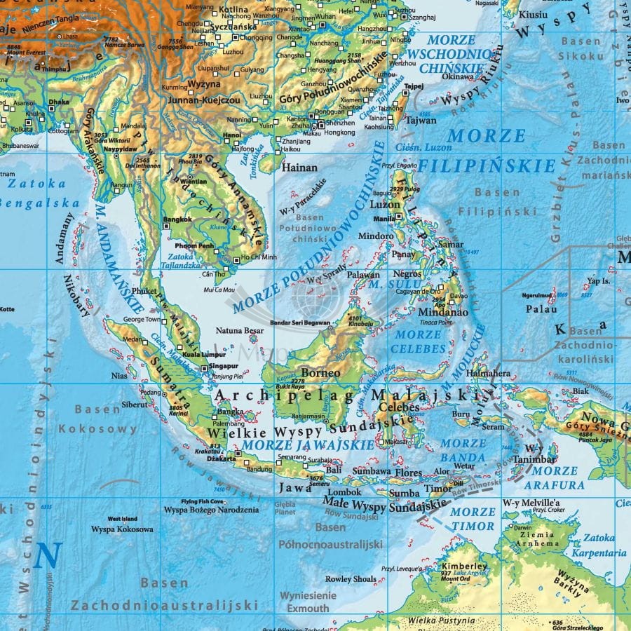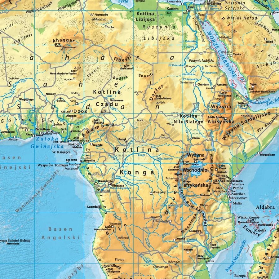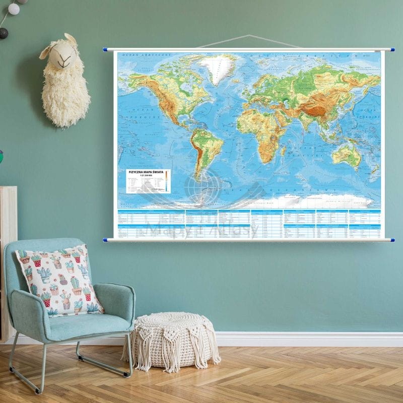 Fizyczna mapa ścienna świata w skali 1:21 200 000 wydawnictwa ArtGlob.
