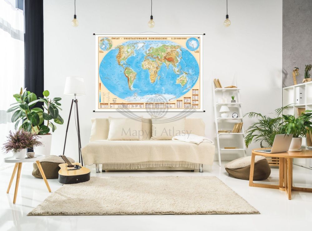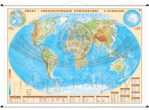 Fizyczna mapa ścienna świata w skali 1:25 000 000 wydawnictwa ArtGlob.