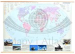 Szkolna mapa ścienna w skali 1:22 000 000 przedstawiająca zróżnicowanie gospodarcze świata - na podkładzie kartogramu konsumpcji energii elektrycznej ukazane jest rozmieszczenie i wydobycie najważniejszych surowców naturalnych...
