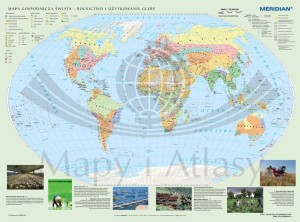 Świat 1:22 000 000. Mapa ścienna gospodarcza: rolnictwo i użytkowanie gleby. Drewniane półwałki