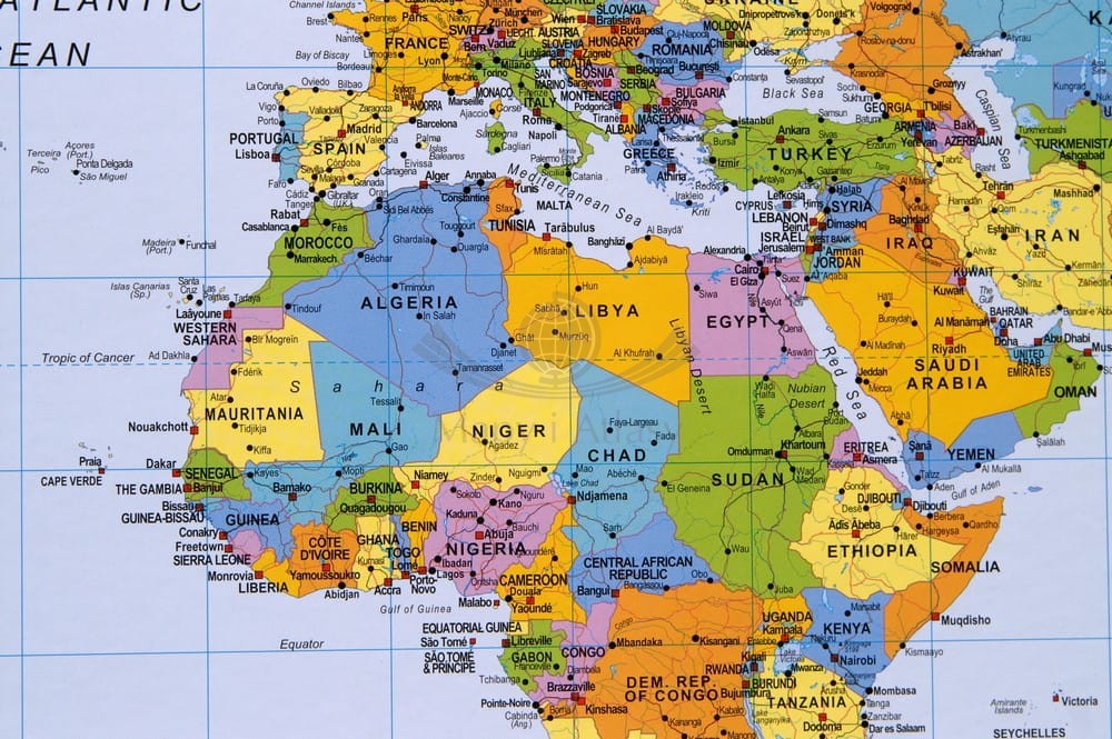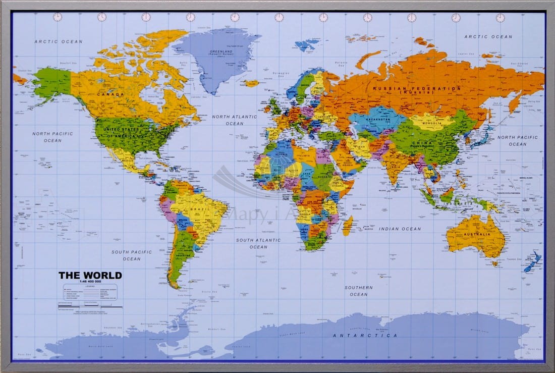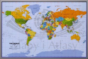 Świat 1:46 400 000. Mapa ścienna polityczna na korku. Wersja do wpinania