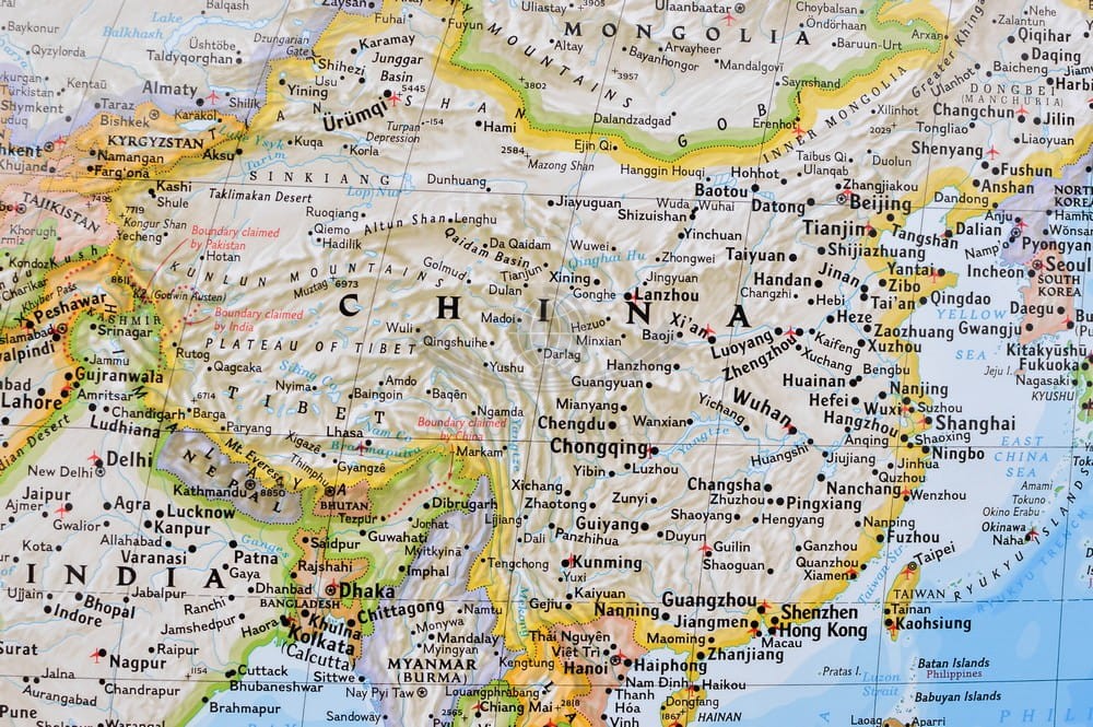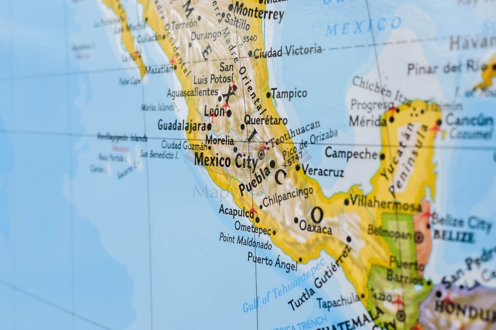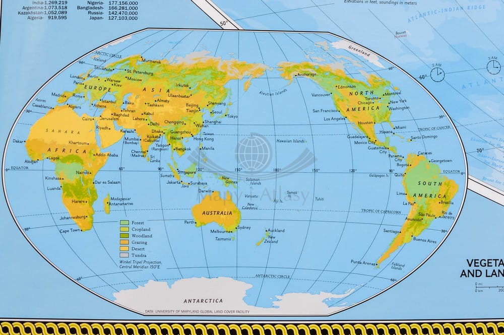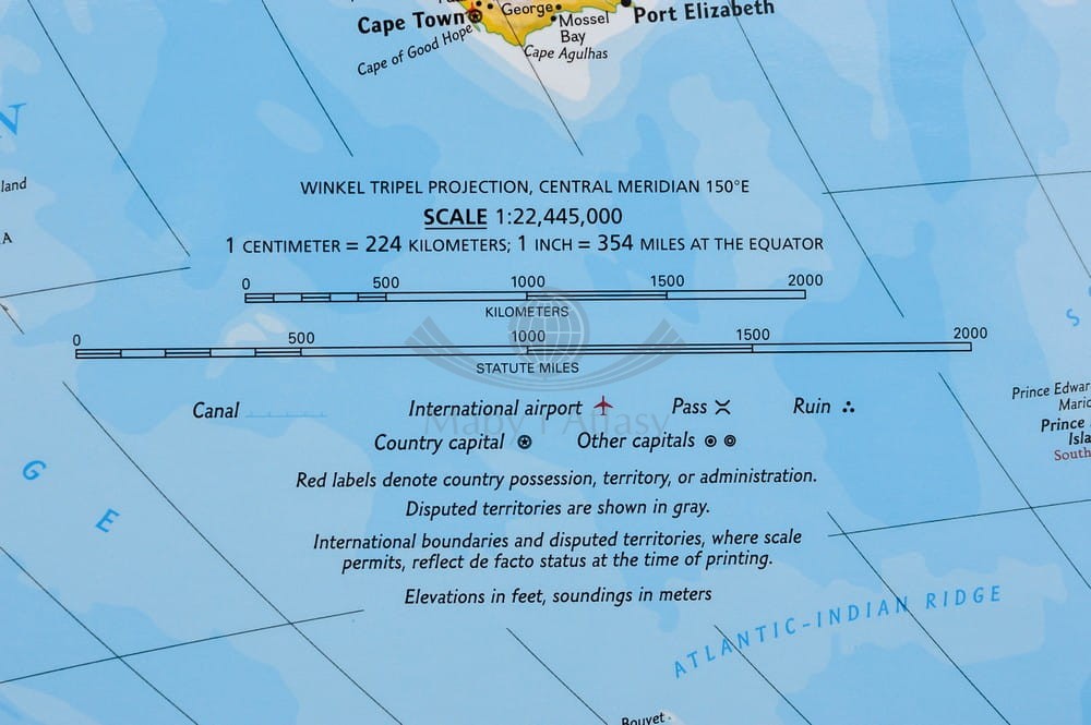 - ukształtowanie geograficzne pokazane w układzie, w którym Ocean Spokojny jest w centrum mapy.