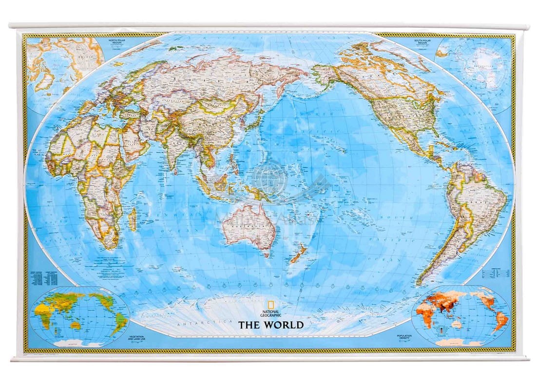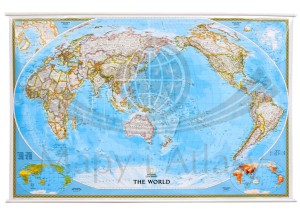 Polityczna mapa ścienna świata Pacific Centered w skali 1:22 445 000 wydawnictwa National Geographic.