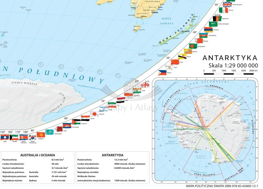 - Antarktyka, skala 1:29 000 000.