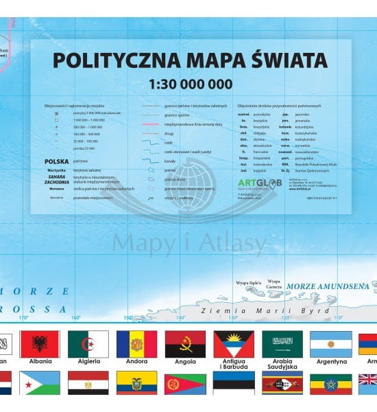 Polityczna mapa ścienna świata w skali 1:30 000 000 wydawnictwa ArtGlob.