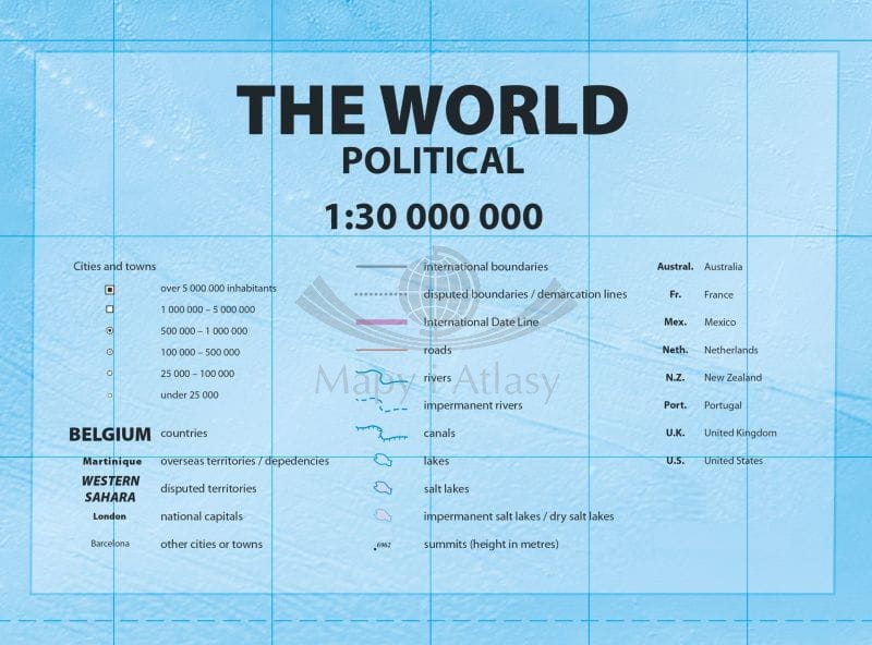 Świat 1:30 000 000. Mapa ścienna polityczna. Język angielski