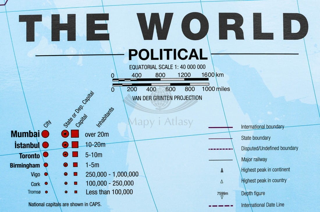 Świat 1:40 000 000. Mapa ścienna polityczna. MI