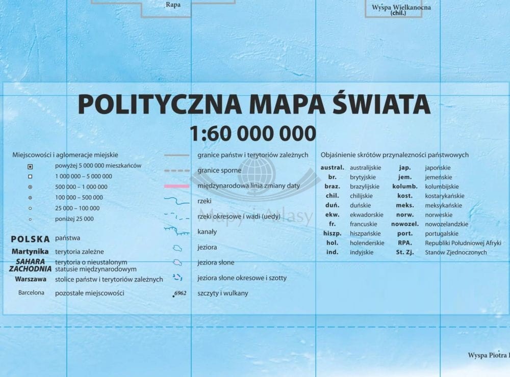 Polityczna mapa ścienna świata w skali 1:60 000 000 wydawnictwa ArtGlob.