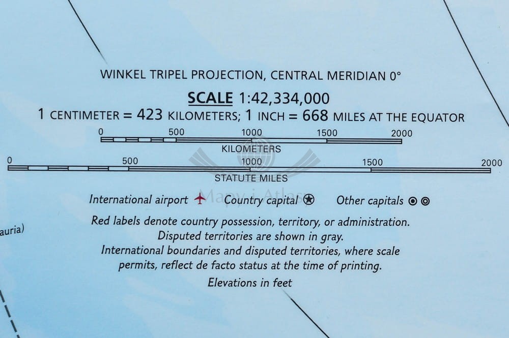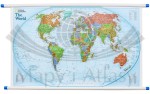 Polityczna mapa ścienna świata Explorer w skali 1:42 334 000 wydawnictwa National Geographic. Na mapie zaznaczono m.in.: granice państw - bardzo wyraźna kolorystyka, stolice wszystkich państw, inne miasta, większe porty lotnicze.