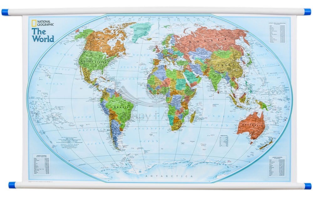 Polityczna mapa ścienna świata Explorer w skali 1:42 334 000 wydawnictwa National Geographic.