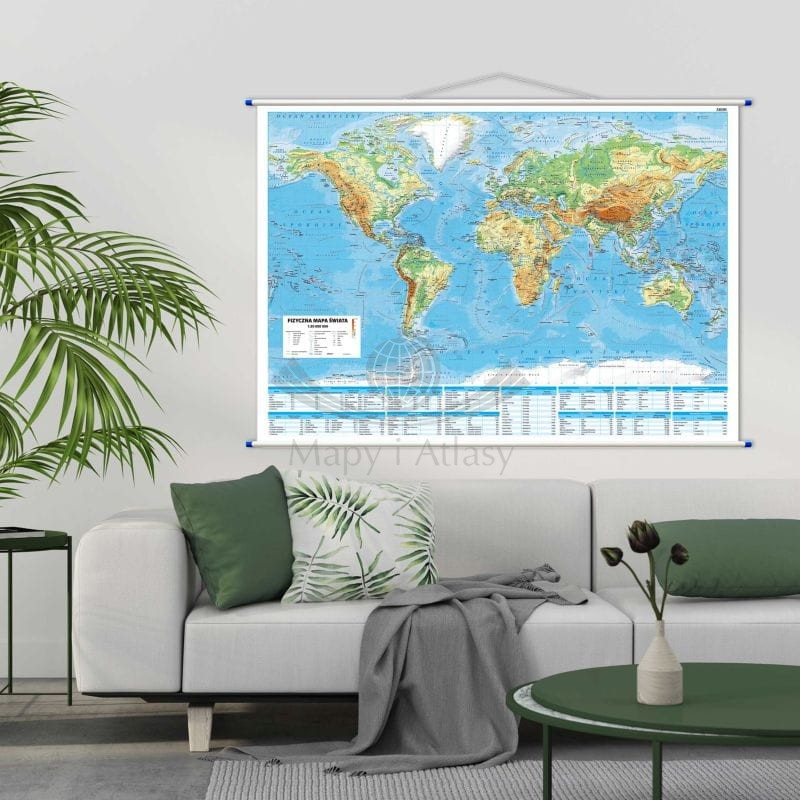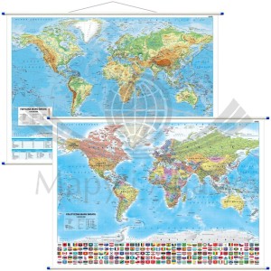 Świat 1:30 000 000. Dwustronna mapa ścienna. Polityczna i fizyczna
