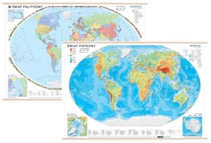 Szkolna, dwustronna mapa ścienna świata w skali 1:30 000 000: polityczna i fizyczna z elementami ekologii.