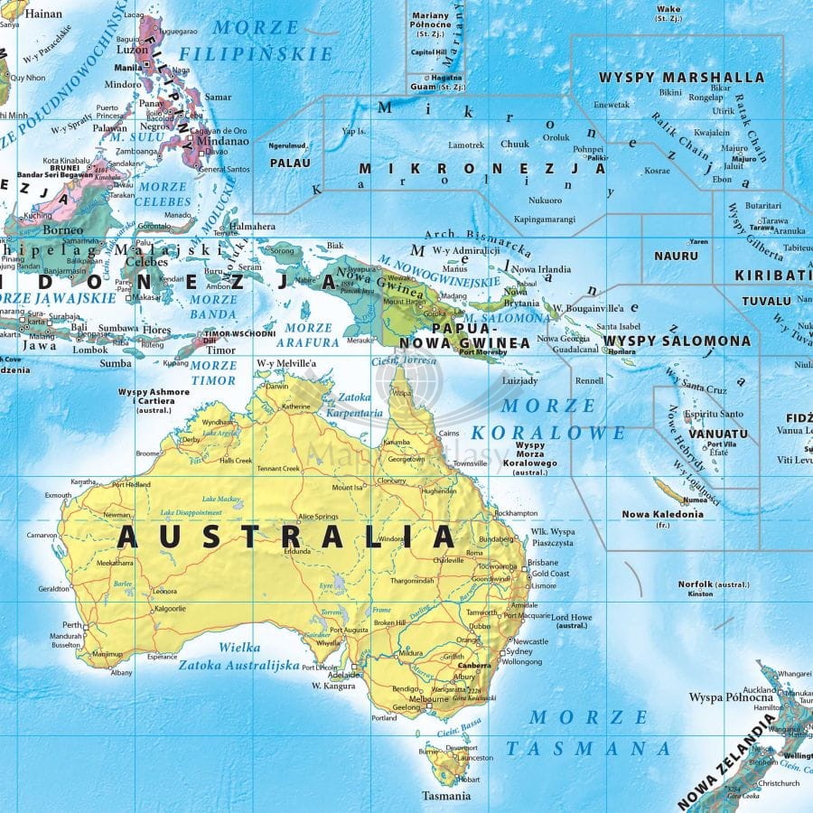 Mapa polityczna zawiera m.in.: