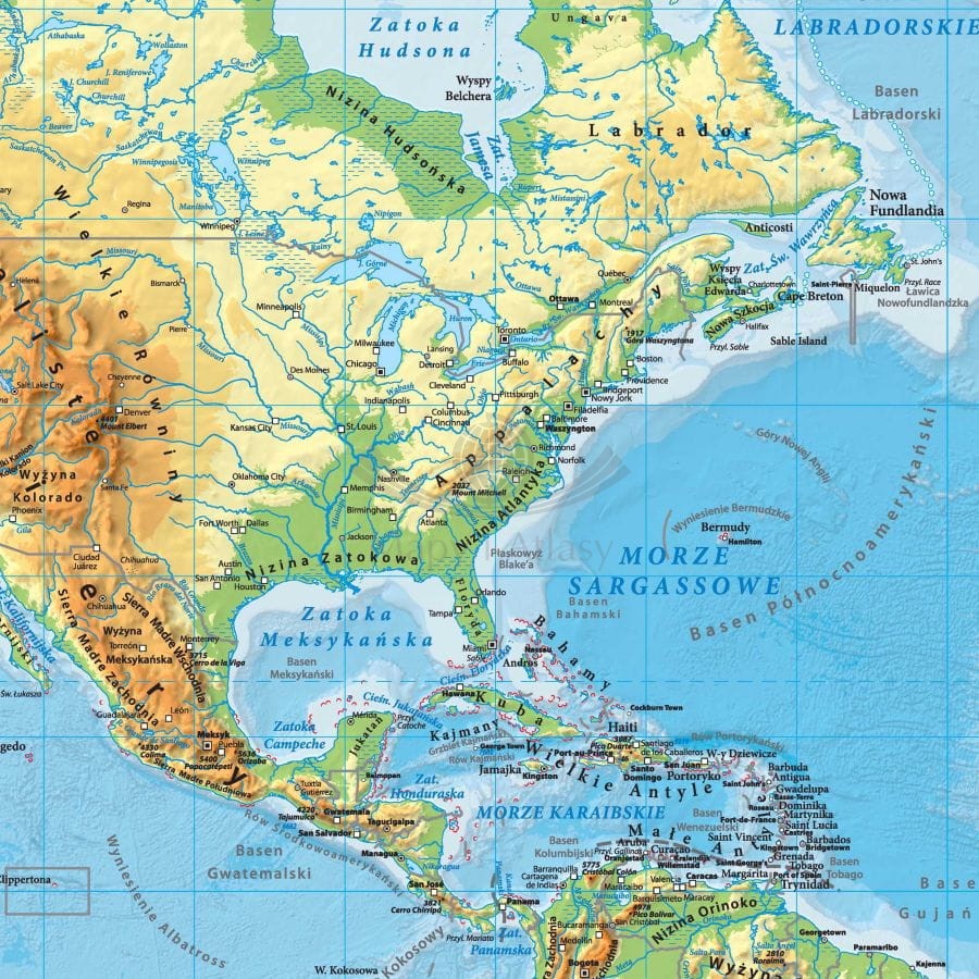 Mapa fizyczna zawiera m.in.: