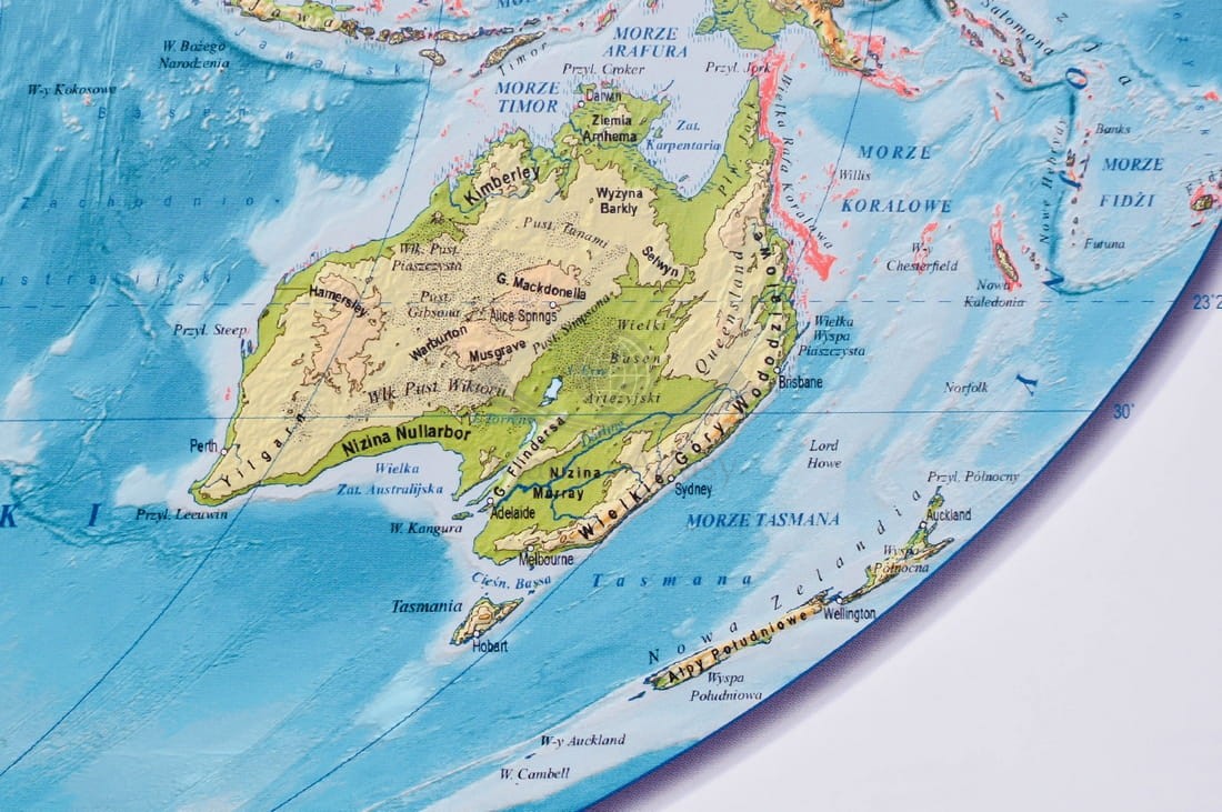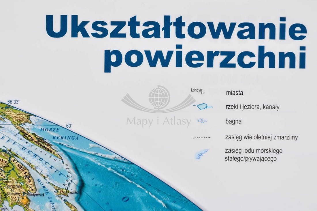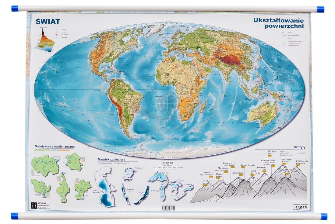 - mapę ukształtowania powierzchni świata w skali 1:65 000 000,