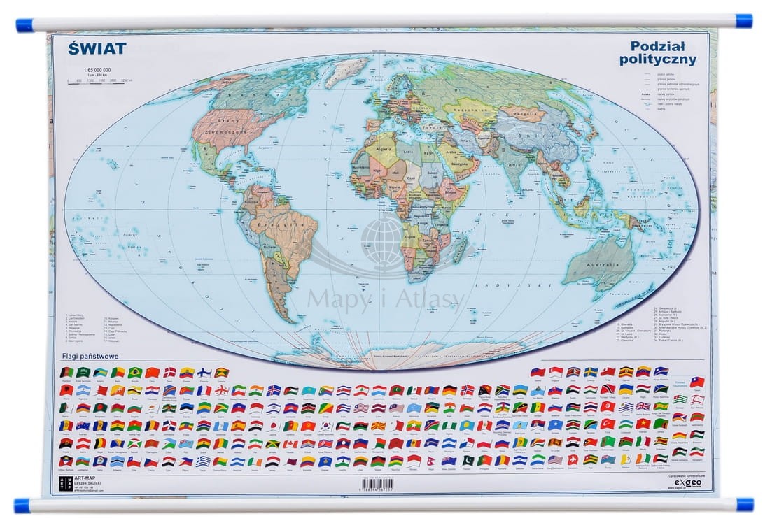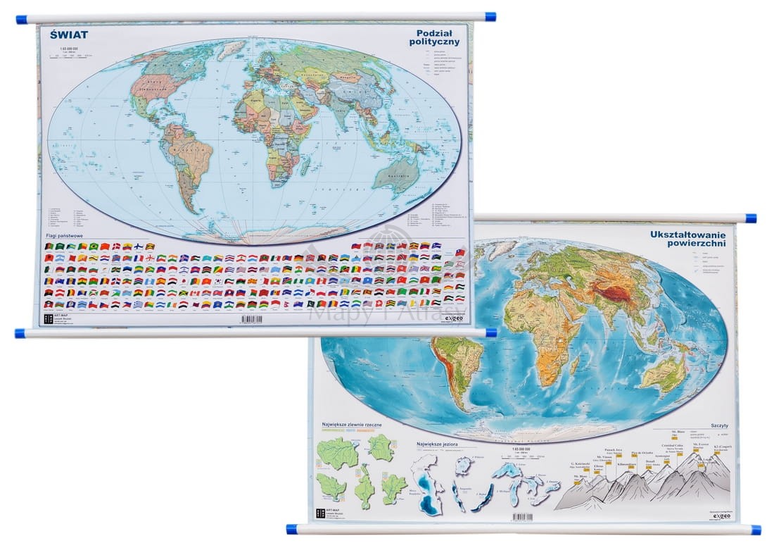 Dwustronna mapa ścienna polityczna i fizyczna świata wydawnictwa ART-MAP.