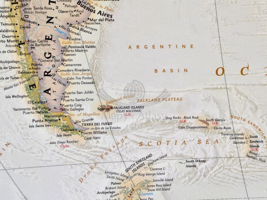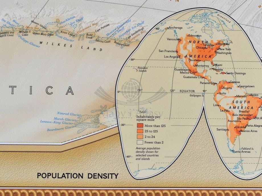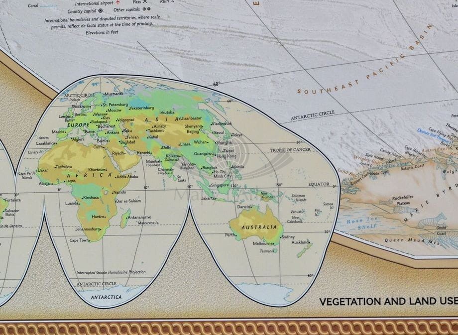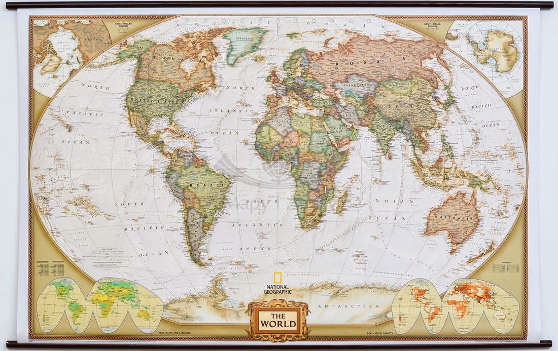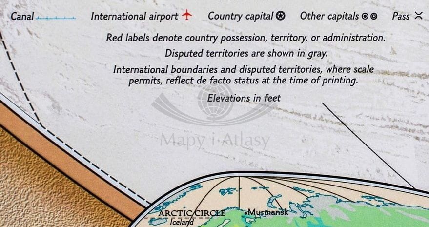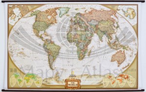 Piękna, ekskluzywna ścienna mapa świata, szczegółowa, a jednocześnie nadająca się znakomicie jako ozdoba każdego stylowego wnętrza.