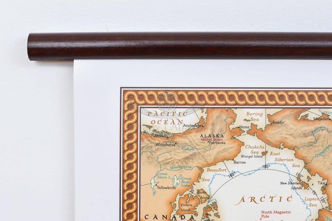 Świat 1:29 811 000. Mapa ścienna polityczna, ekskluzywna. Drewniane półwałki