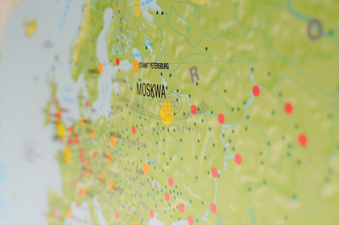Świat 1:26 000 000. Rozmieszczenie ludności - ekumena, subekumena i anekumena. Mapa ścienna. Drewniane półwałki