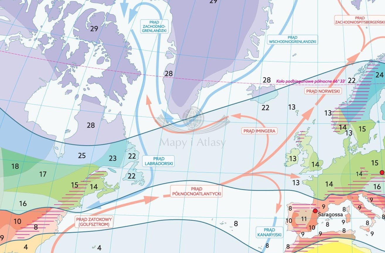 - ciepłe i zimne prądy morskie,
