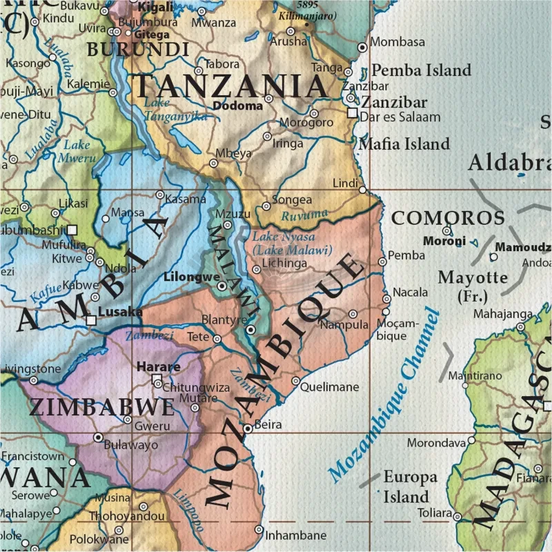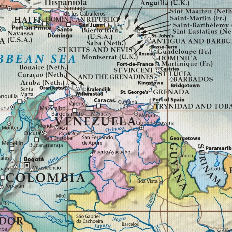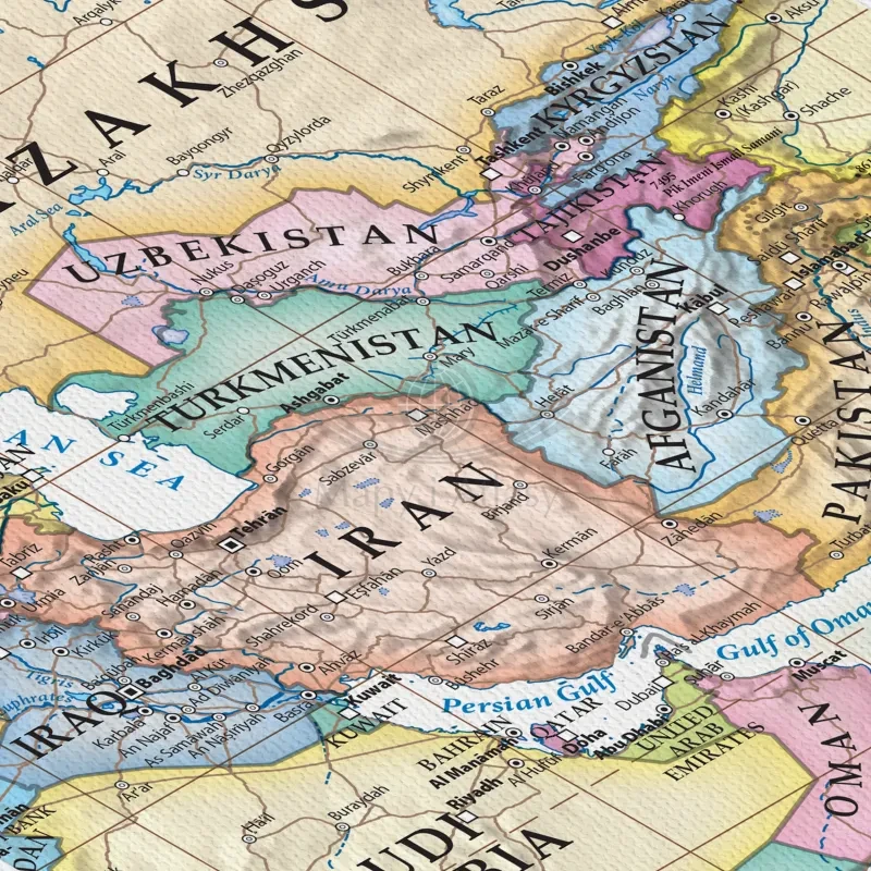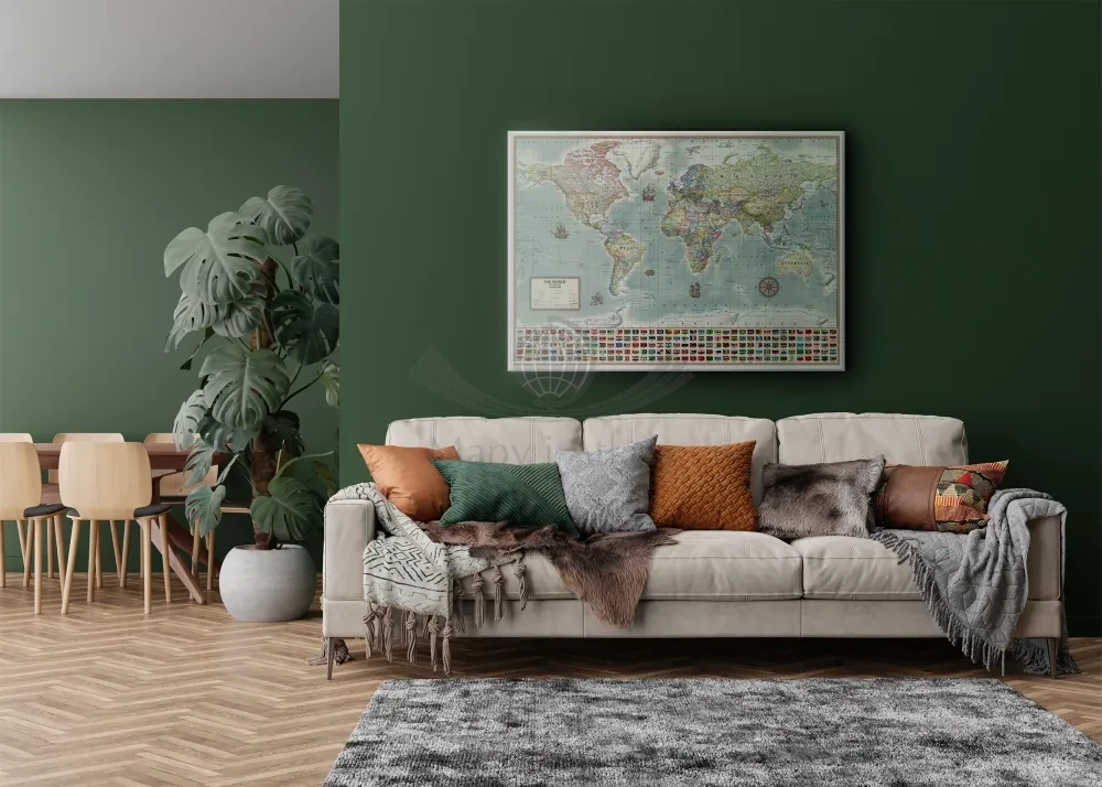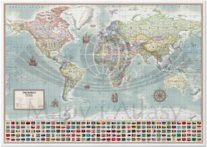 Polityczna, stylizowana mapa ścienna świata w skali 1:30 000 000 wydawnictwa ArtGlob, w języku angielskim, wydrukowana na płótnie Canvas.
