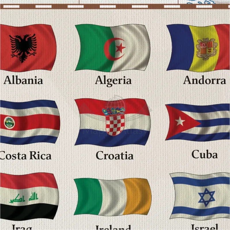 Dodatkowo w dolnej części mapy umieszczono flagi państw świata, dzięki czemu stanowi ona bogate źródło wiedzy.