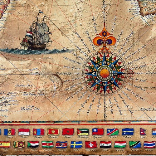 Piękna mapa świata wydawnictwa Ray&Co. Jedyna taka mapa na rynku, subtelnie wystylizowana, z wieloma eleganckimi detalami i aktualnymi flagami państw. Dzięki stylizacji mapa nadaje się nie tylko do gabinetów o ciemnym, stylizowanym wystroju, ale także do pomieszczeń nowoczesnych i jasnych.