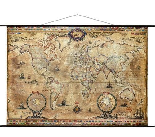 Świat 1:33 000 000. Mapa ścienna stylizowana a'la pergamin