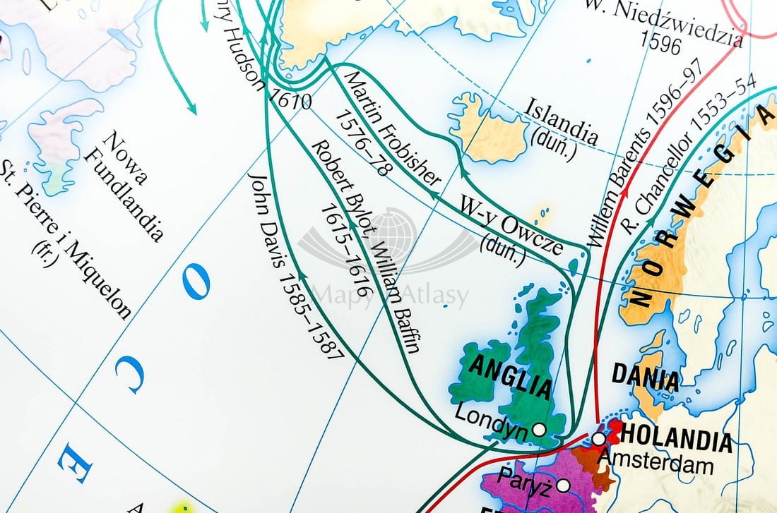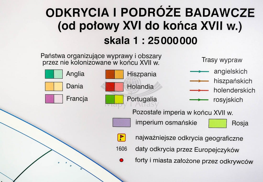 Na pierwszej stronie przedstawiono trzy mapy świata. Mapa główna Wielkie odkrycia geograficzne (od końca XV do połowy XVI w.) w skali 1 : 25 000 000 pokazuje państwa organizujące wyprawy, obszary przez nie odkrywane i kolonizowane...