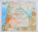 Drogowo-fizyczna mapa ścienna Syrii i Libanu w skali 1:750 000 wydawnictwa Gizi Map. Na mapie zaznaczono min.: drogi, numery dróg, odległości w kilometrach, linie kolejowe, lotniska, porty, linie promowe, latarnie morskie, przejścia graniczne, granice państw, granice administracyjne...