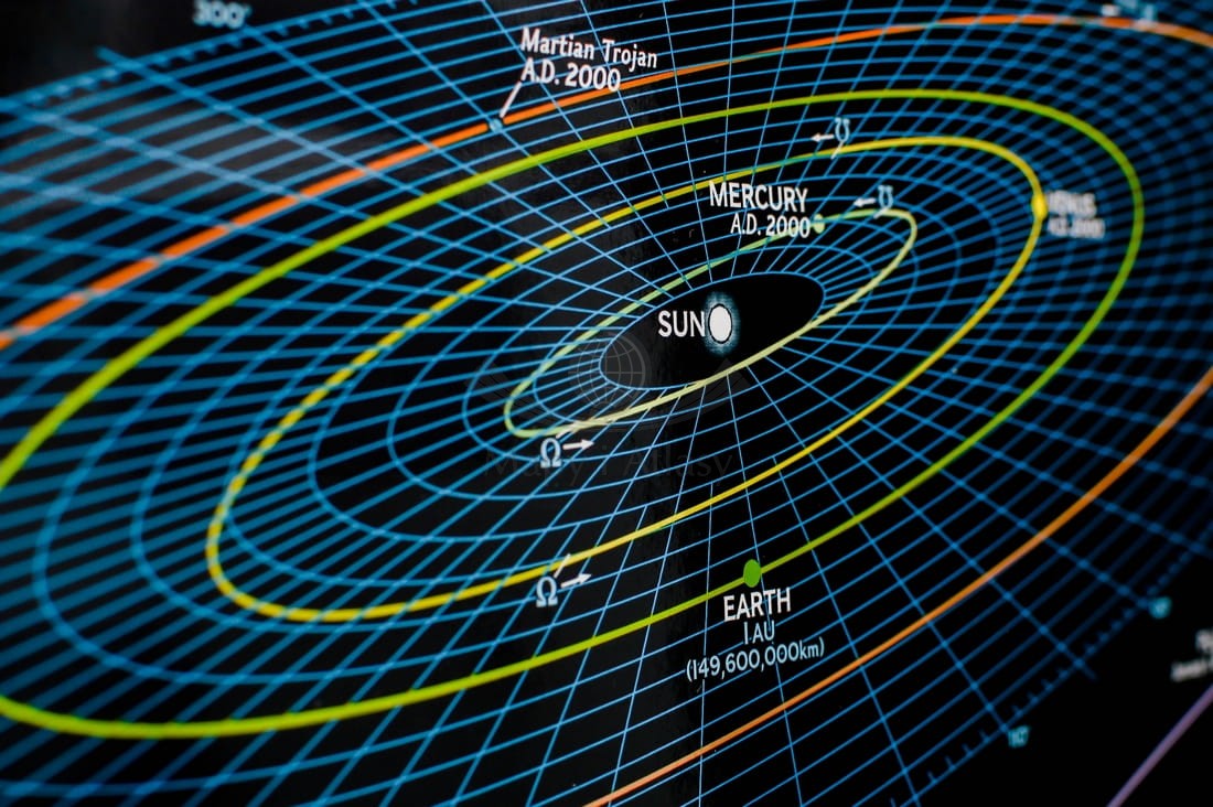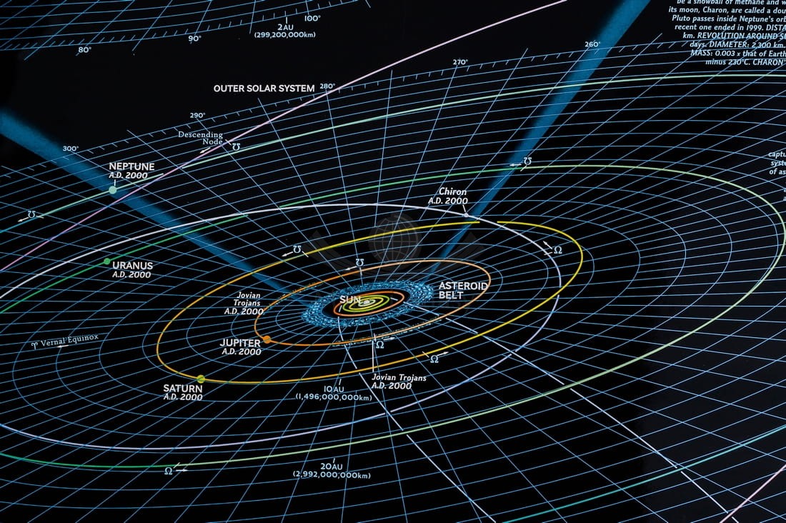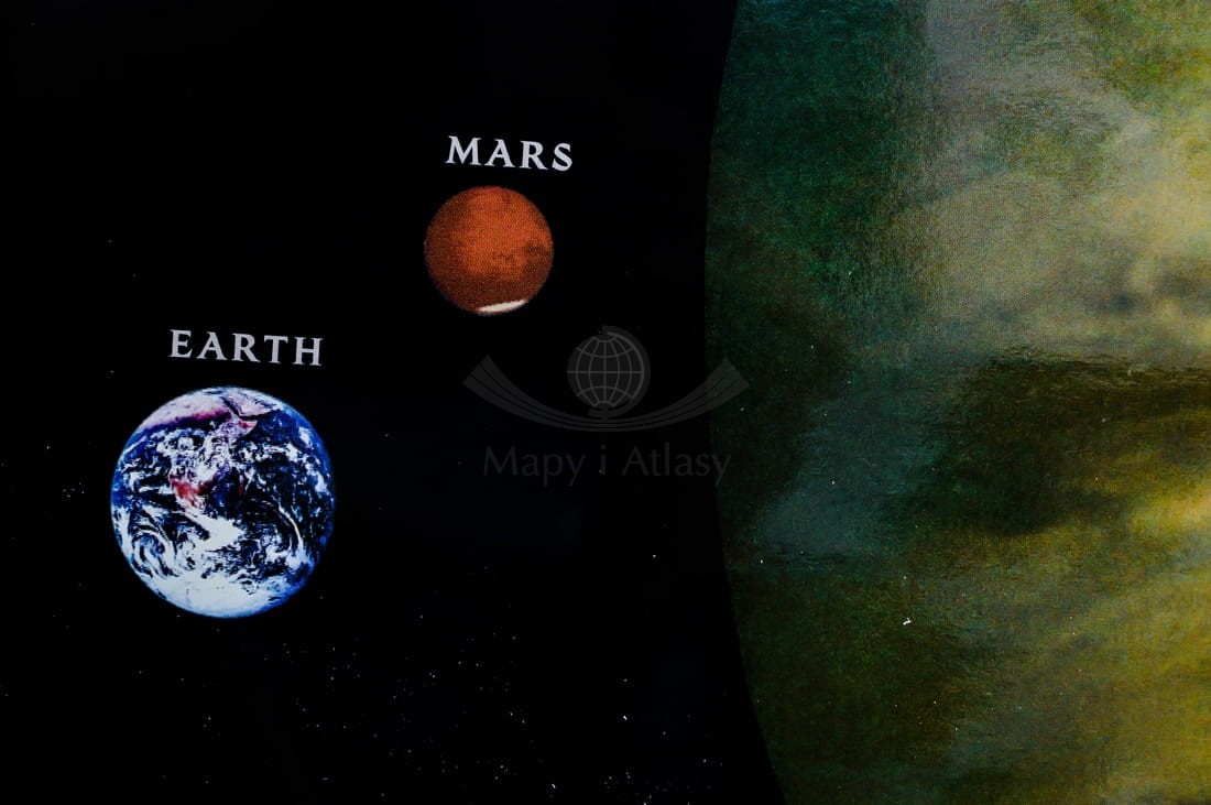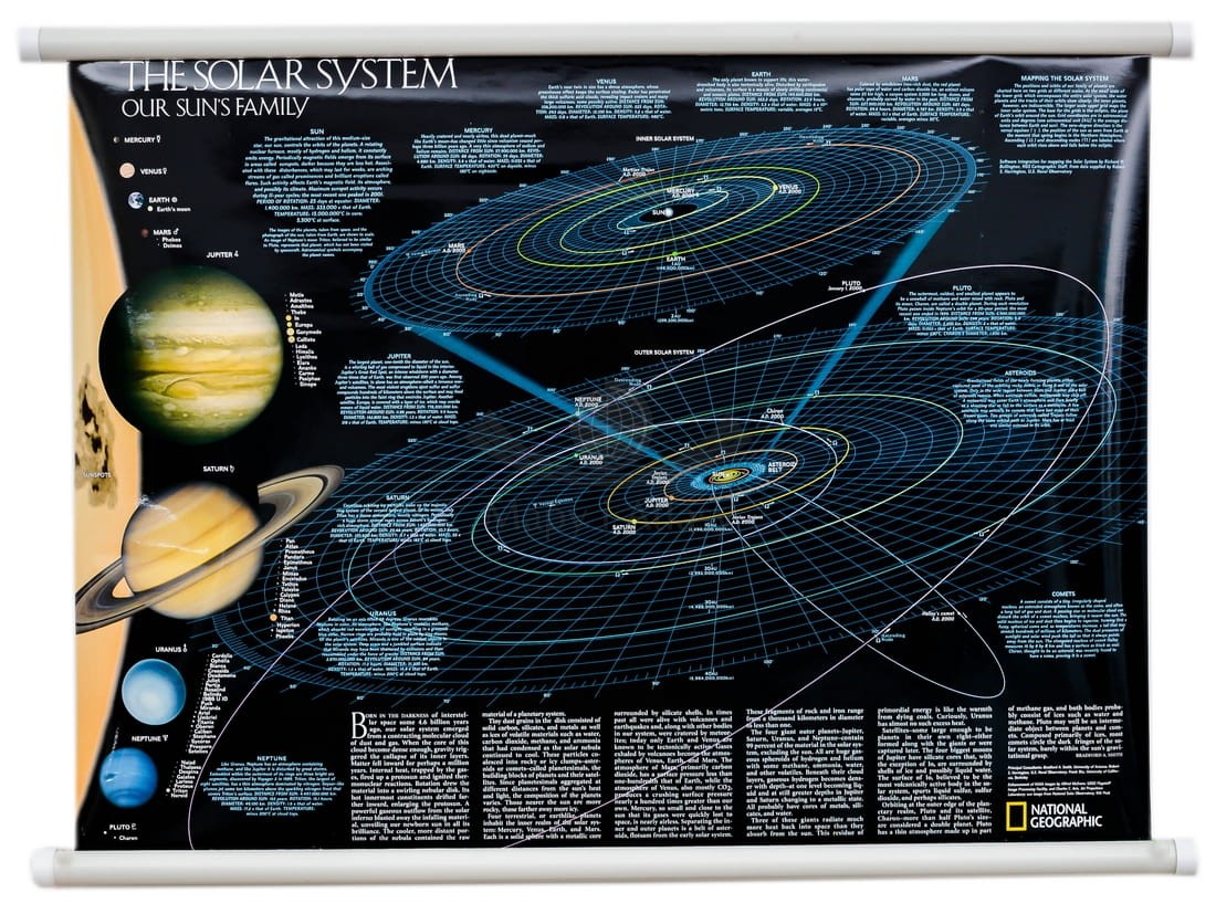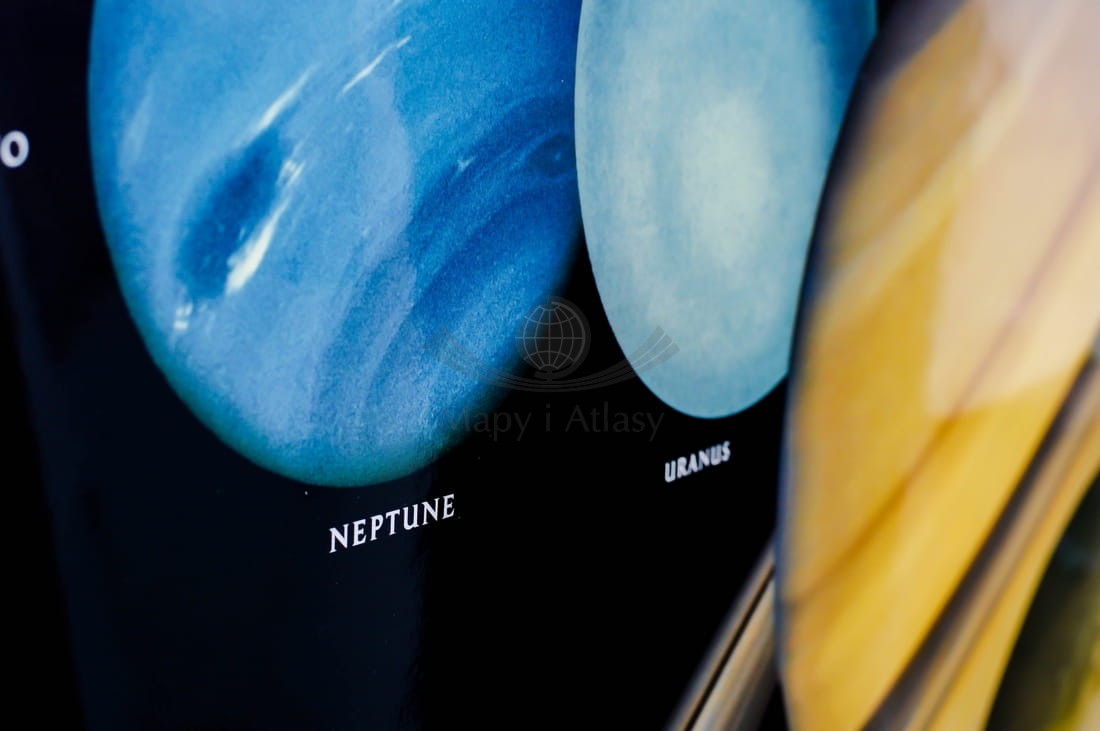 Dwustronna mapa ścienna Układu Słonecznego wydawnictwa National Geographic. Mapa w języku angielskim.
