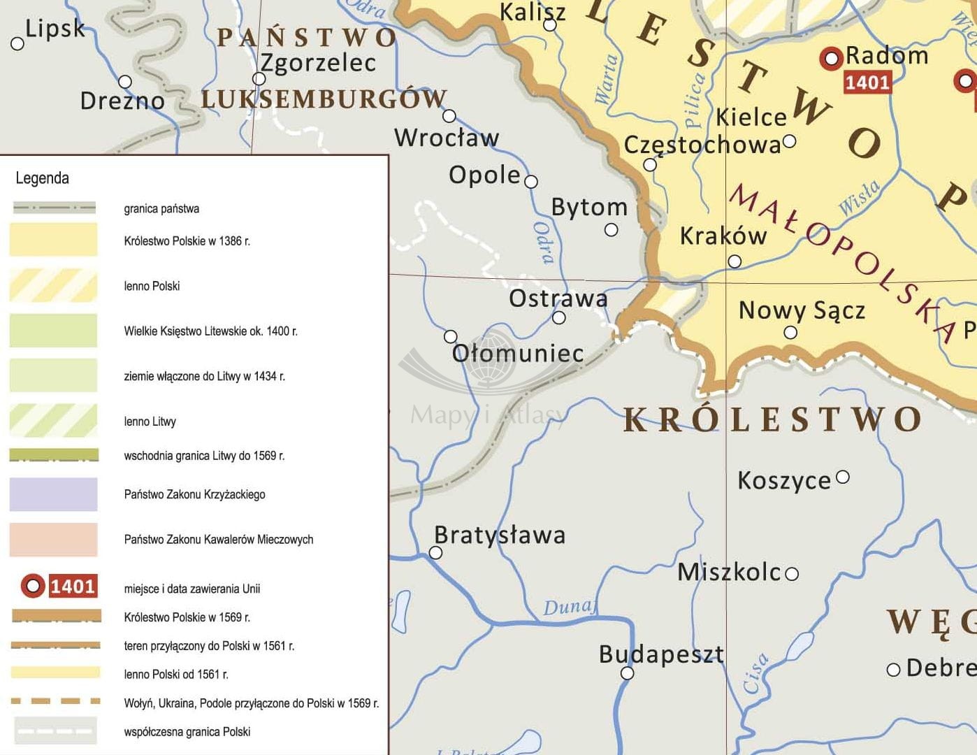 - zasięg terytorialny Królestwa Polskiego i Wielkiego Księstwa Litewskiego w XIV wieku,