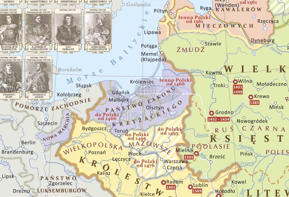 Unie Polski z Litwą. Mapa ścienna. Wersja STRONG