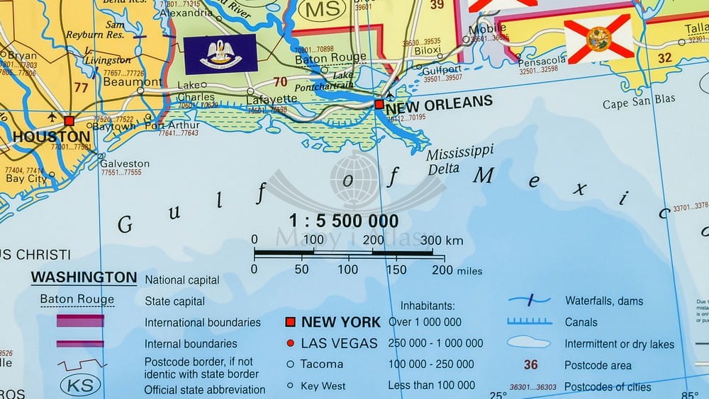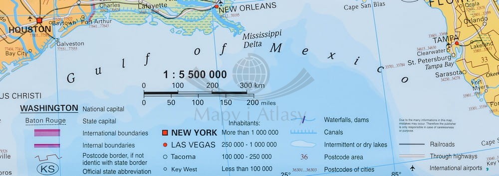 Stany Zjednoczone / USA 1:5 500 000. Mapa ścienna administracyjna. Kody pocztowe.