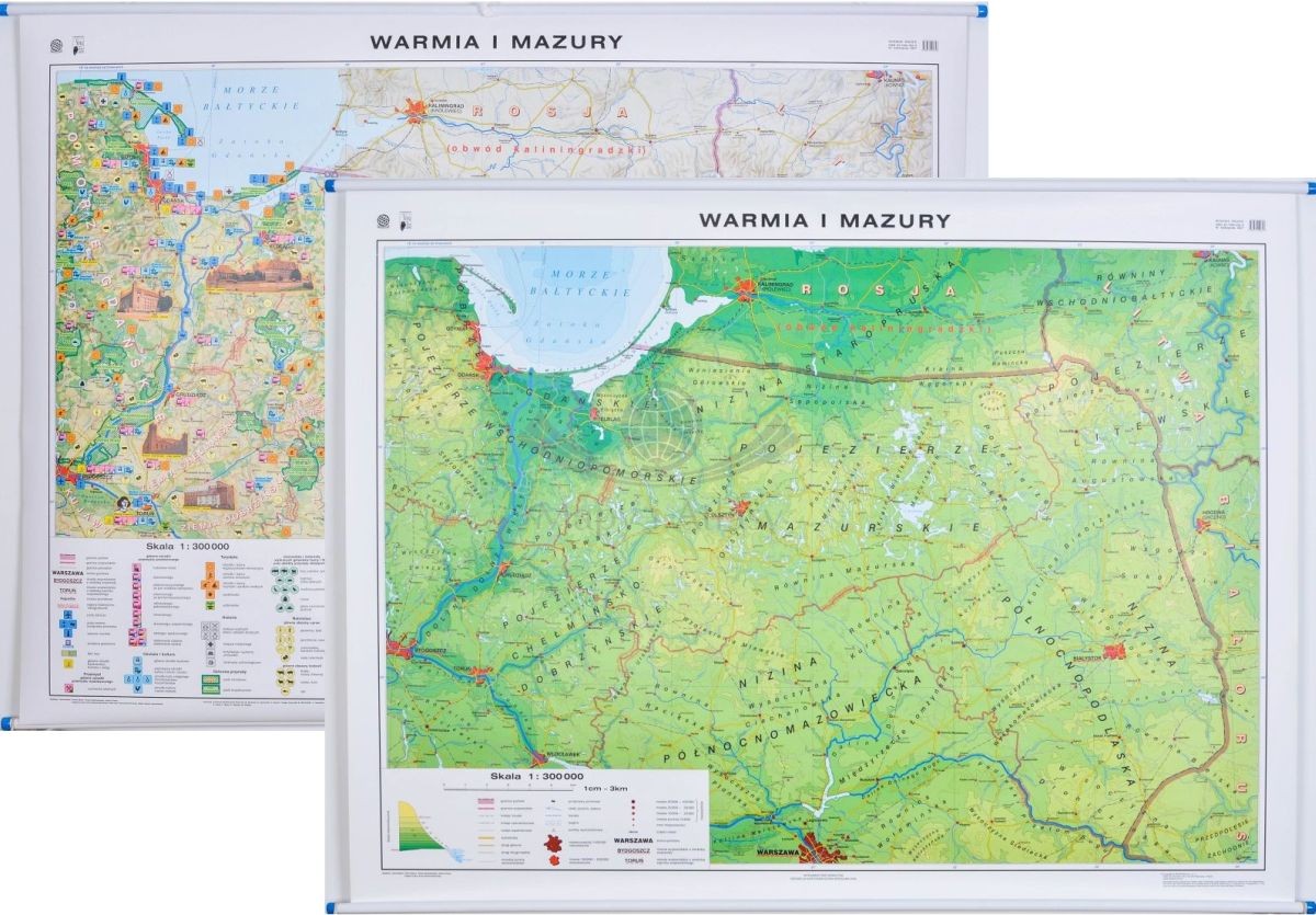 Warmia i Mazury. Dwustronna mapa ścienna. Fizyczna, ogólnogeograficzna / krajobrazowa