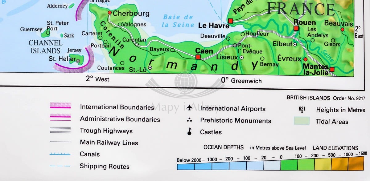 Wyspy Brytyjskie / Wielka Brytania. Mapa ścienna fizyczna. Drewniane półwałki